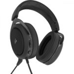 Los auriculares para juegos CORSAIR HS50 PRO STEREO son cómodos y de calidad, con almohadillas de espuma con memoria, transductores de audio de neodimio de 50 mm de ajuste personalizado y un micrófono unidireccional extraíble con cancelación de ruido.