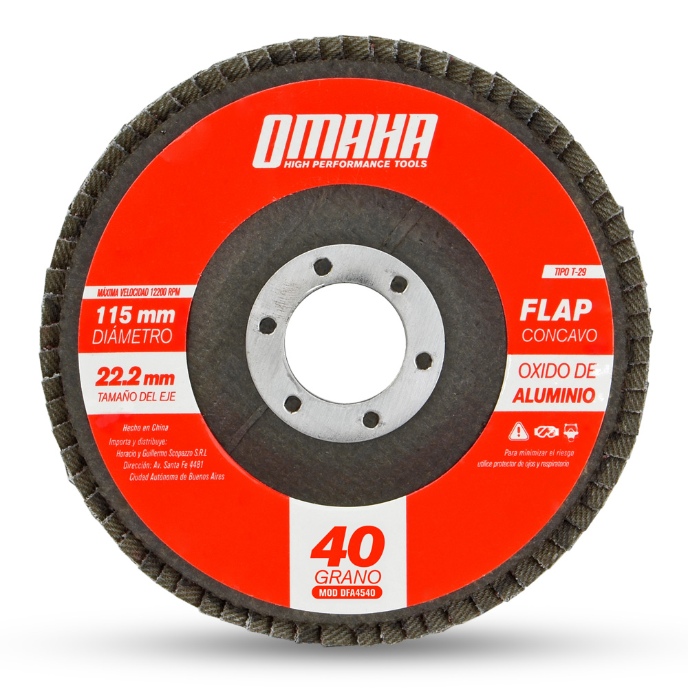 DISCO FLAP OXIDO DE ALUMINIO 115 x 22.2 mm | Grano 40 omaha