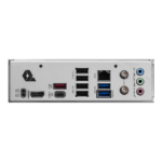 Puertos del panel posterior Clear CMOS, puertos USB (2.0, 5 Gbps, 10 Gbps), HDMI™, LAN 2.5G, Wi-Fi/Bluetooth, botón Flash BIOS, conectores de audio