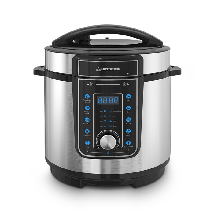 Olla electrica a presion Ultracomb 1000W. Capacidad 6Lts. Pantalla digital, control tactil, 11 programas